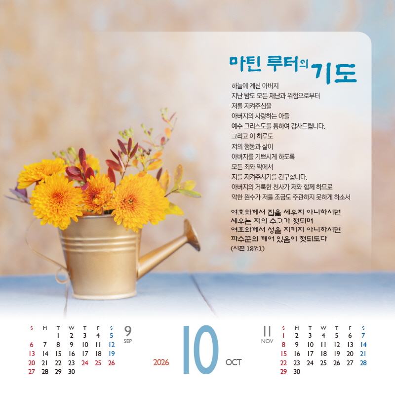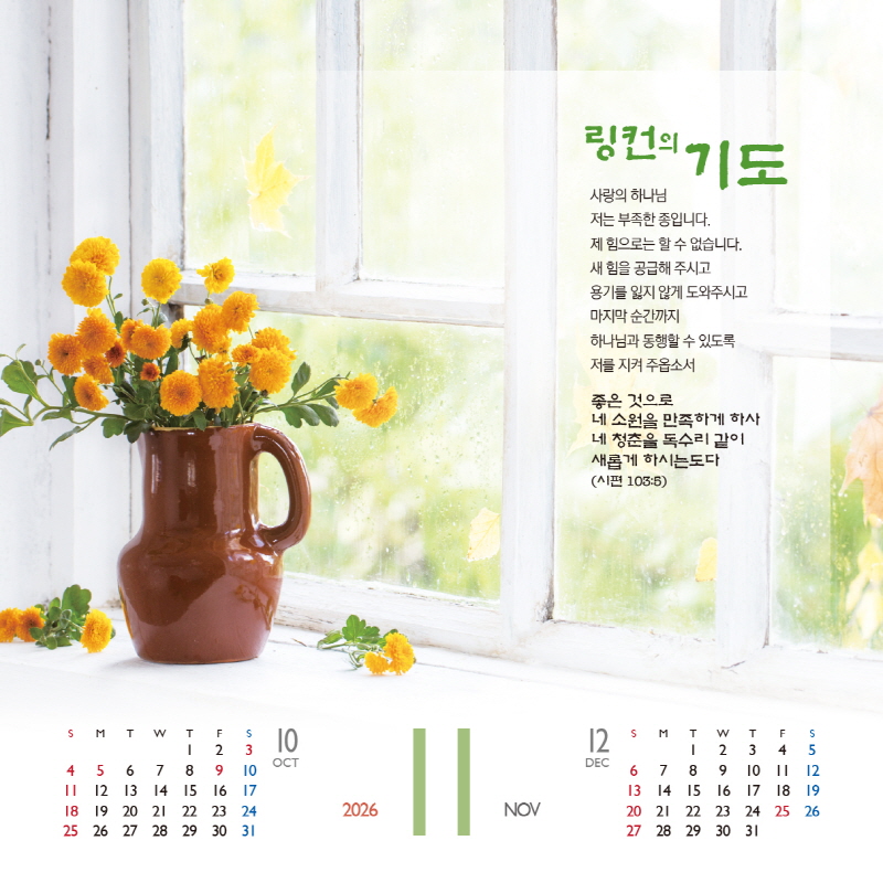 ◈본 캘린더에는 음력, 절후, 교회력이 표기되어 있습니다.