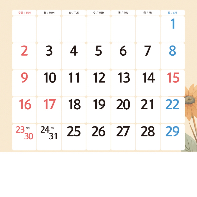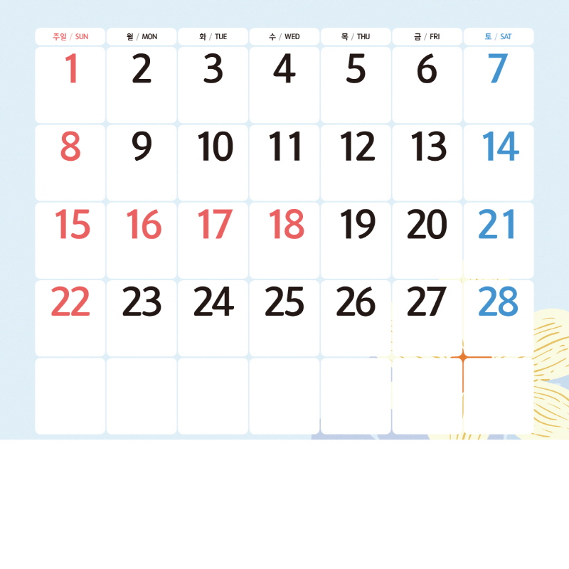 전년도 카렌다 하단부를 스마트폰 촬영하여 이미지를 첨부하여 주시고 기타요청사항에 수정사항을 기입하여 보내주시면