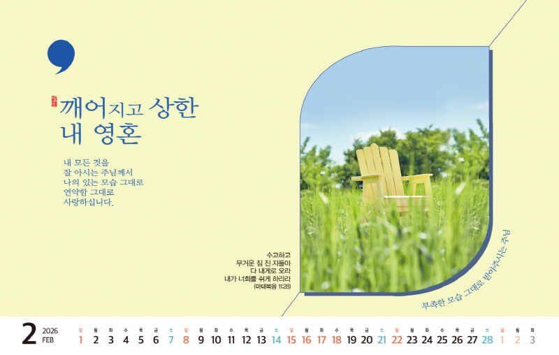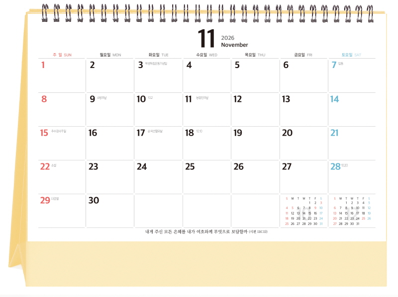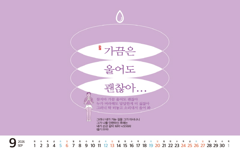 ◈본 캘린더에는 음력, 절후, 교회력이 표기되어 있습니다.