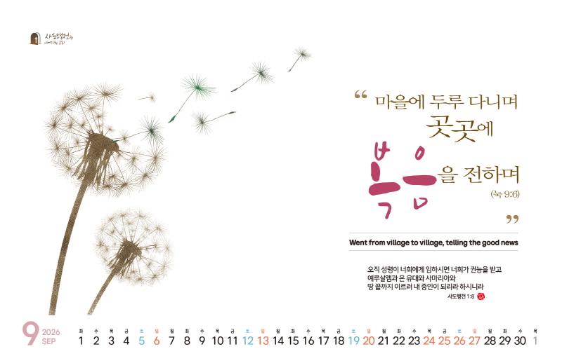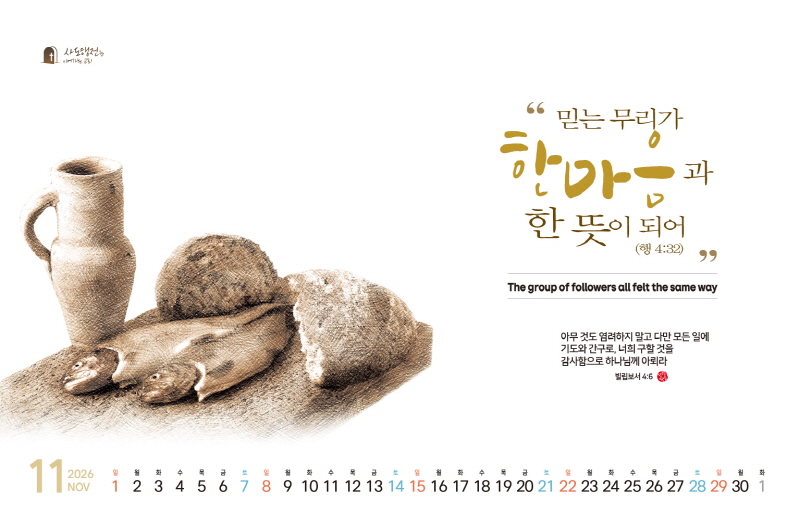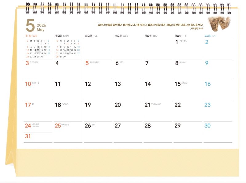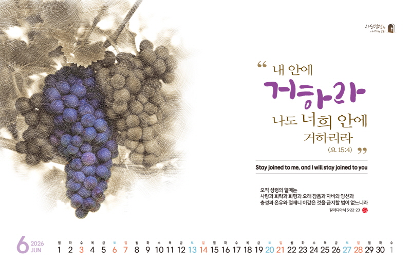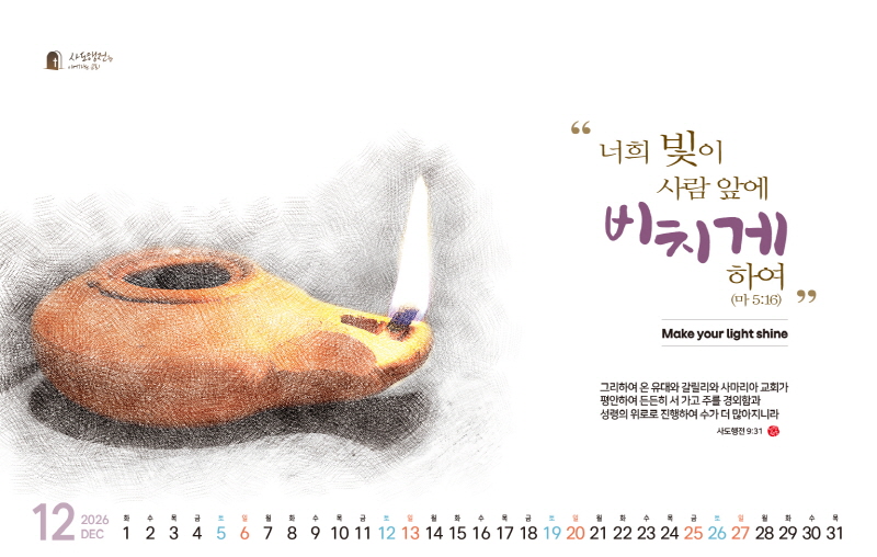 ◈본 캘린더에는 음력, 절후, 교회력이 표기되어 있습니다.