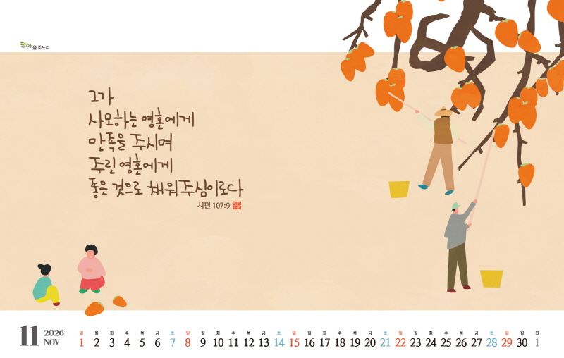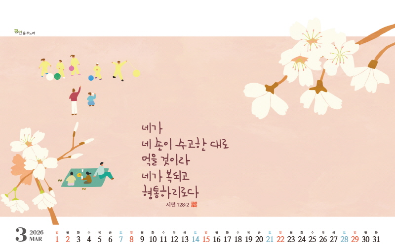 ◈본 캘린더에는 음력, 절후, 교회력이 표기되어 있습니다.