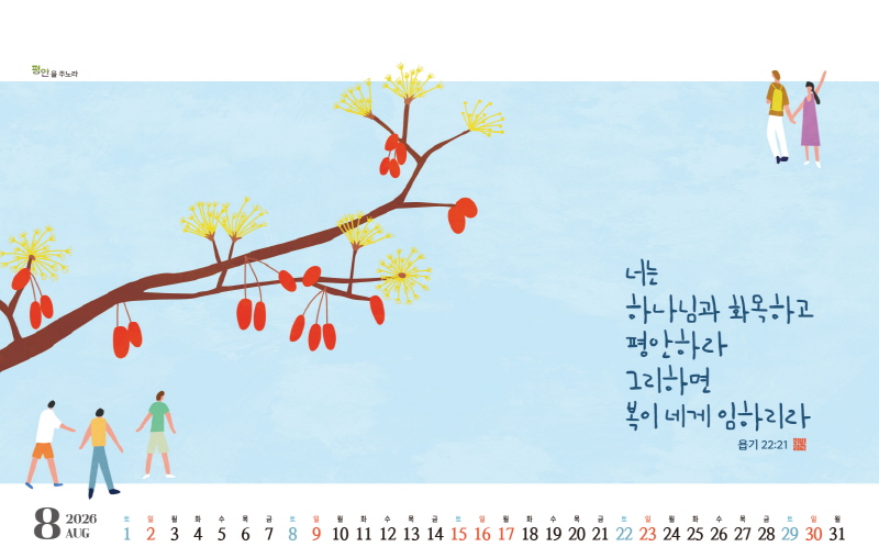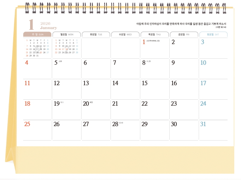 본 캘린더에는 음력, 절후, 교회력이 표기되어 있습니다.