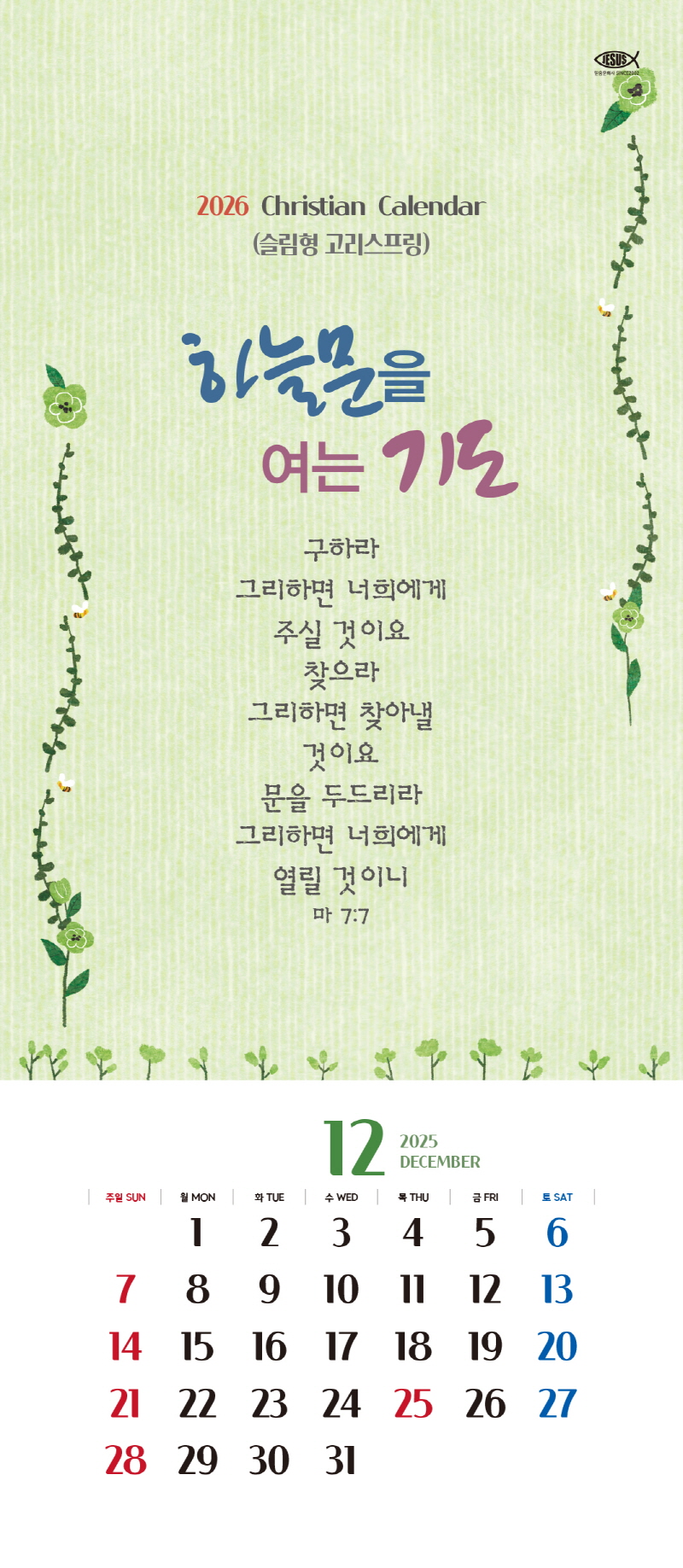 2026년 캘린더 주문 마감안내